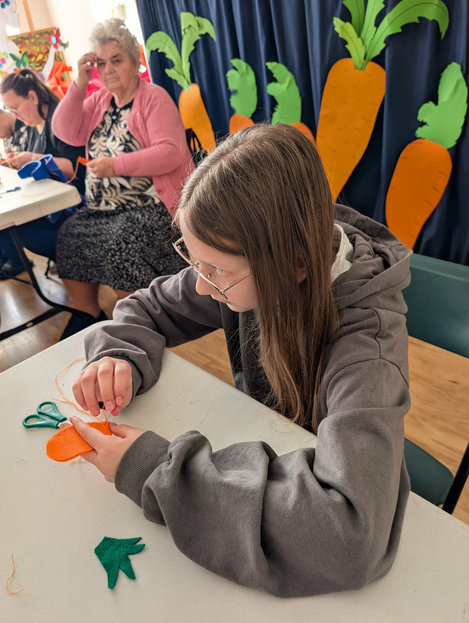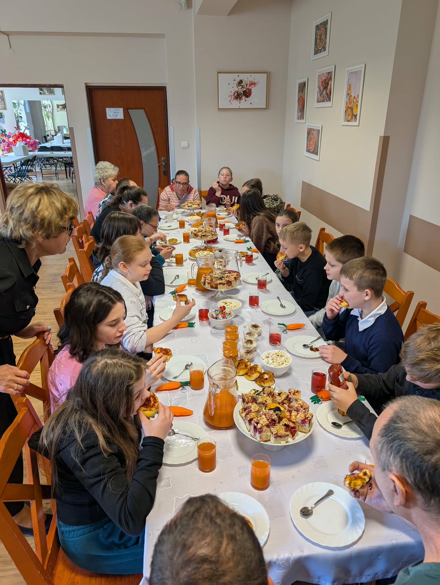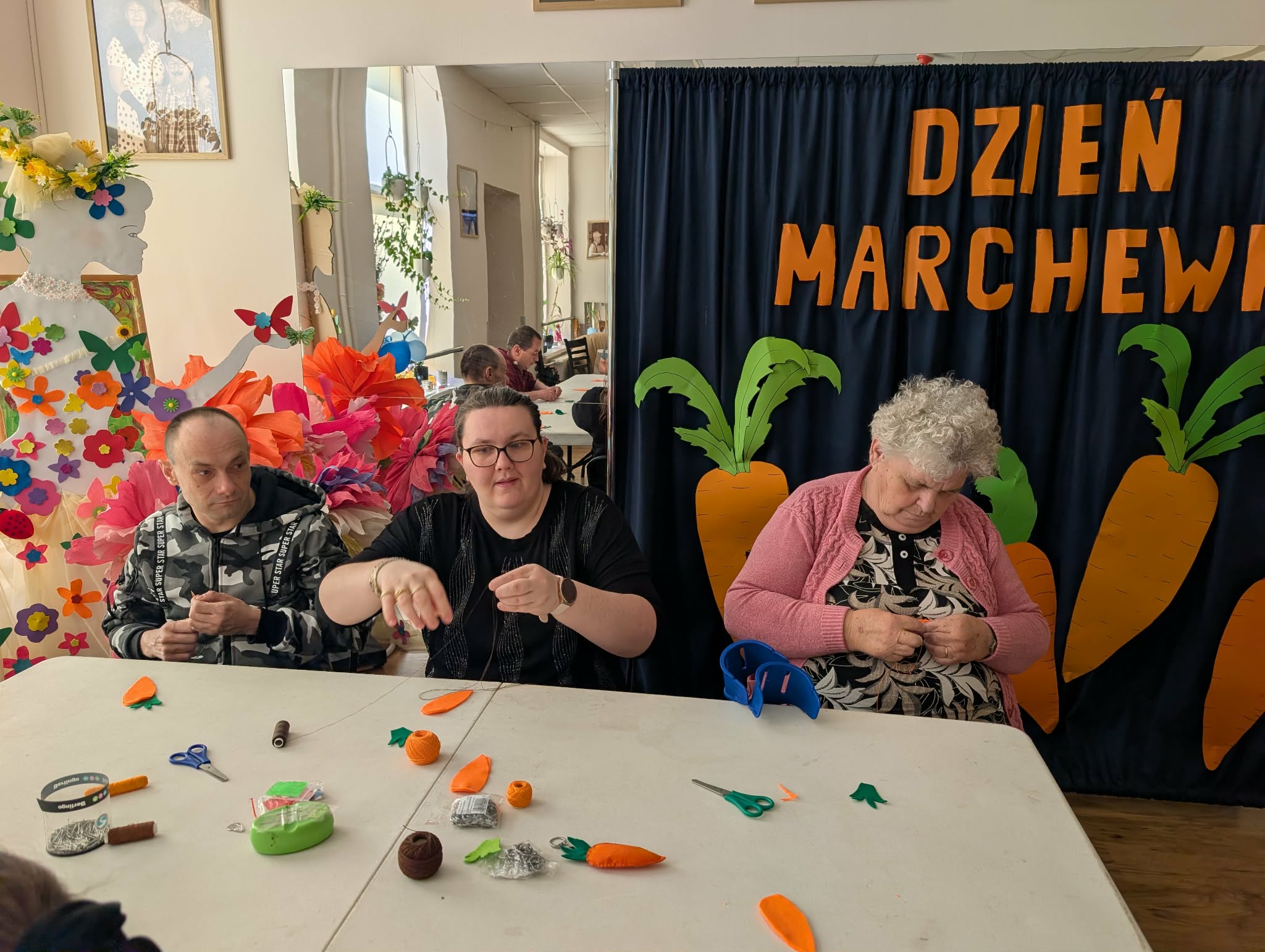 10 kwietnia nasz ośrodek odwiedzili uczniowie klasy 5 z Publicznej Szkoły Podstawowej w Jedlnie. Było to szczególne spotkanie, które połączyło naukę z radosną integracją. Podczas wizyty goście zapoznali się z funkcjonowaniem naszej placówki i wspólnie z naszymi uczestnikami wzięli udział w warsztatach rękodzielniczych, własnoręcznie tworząc kolorowe breloczki w kształcie marchewki. Dla wszystkich biorących udział w warsztatach przygotowaliśmy poczęstunek oraz możliwość korzystania z naszych pracowni terapeutycznych. Dziękujemy uczniom oraz ich opiekunom za odwiedziny i wspólnie spędzony czas.